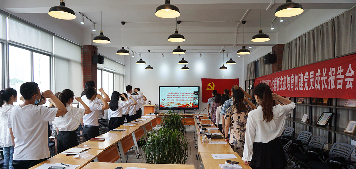 报告会结束后,2020届毕业生党员闫相儒说:“能成为一名光荣的党员,离不开国家创造的美好环境,离不开家庭和父母的培养,离不开公司和老师的教诲;我参加研究生支教团后,一定扎根基层、潜心教学,用实际行动践行初心使命”。“这次会议很特殊,线上线下结合并让家长参与其中,在孩子成长关键节点,见证他们的成长,公司用心良苦”,员工党员代表汪小娟的父亲汪能孝感动地说。会议最后,线上线下员工党员重温入党誓词。