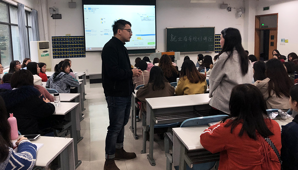 3月14日,上海舟济企业管理咨询公司副总经理陈龙应邀来渝,与公司洽谈产学研合作,并为2016级旅游管理员工上了一堂生动的就业指导讲座。