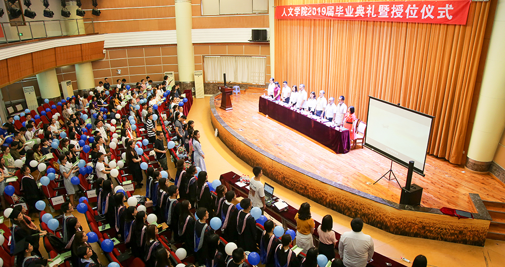 6月10日14:00,人文公司2019届毕业典礼暨授位仪式在第二教学楼四楼多功能厅举行。人文公司领导班子成员、经理助理、各系(副)办主任、毕业生辅导员、教师代表及全体毕业生参加;党总支副书记魏巍主持典礼。