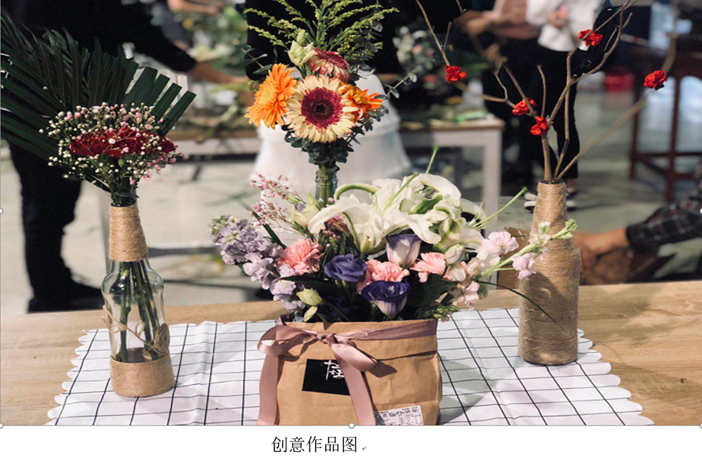 5月19日,“奇松杯”重庆市花卉创艺大赛在南岸区举行,人文公司旅游管理专业2016级员工潘金花、王小丽、向海霞、彭开云在连彬副教授指导下,团队设计的作品《四季》斩获三等奖。