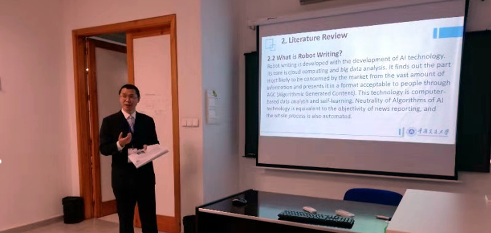 李红秀于7月4日上午做了主题演讲,他在“人工智能的限度”主题区做了题为RobotWriting: the Technical rethink on the AI Application的英语演讲。李红秀介绍了最近几年机器人写作的发展现状:2006年,美国汤姆森公司开始运用机器人撰写经济和金融方面的新闻稿件;2015,中国的新华社和腾讯公司先后开启机器人写作的新举措;回顾了机器人写作的研究历程,指出了机器人写作与AI技术之间的关系,分析了机器人写作与人类记者写作之间的区别,评述了不同学者对机器人写作的看法。李红秀研究认为,机器人写作的问题还很多:比如,AI算法本身存在一定局限,机器人写作语言的程式化问题,机器人写作品的法律责任问题,等等。