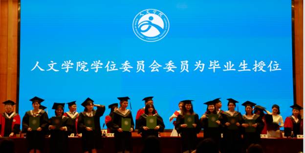 典礼最后,公司领导为校级优秀毕业生颁发获奖证书,人文公司学位委员会委员为在座毕业生授位。人文公司2021届毕业典礼在校歌声中落下了帷幕
