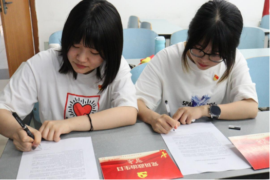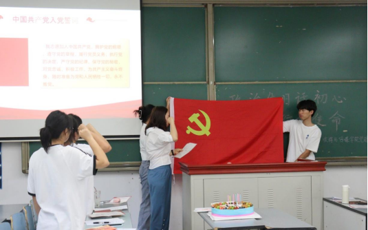 “我志愿加入中国共产党,拥护党的纲领,遵守党的章程,履行党员义务,执行党的决定,严守党的纪律,保守党的秘密……”本科生第一党支部书记肖丽群带领全体党员重温入党誓词。句句誓言铿锵有力,回荡耳畔,党员目光坚定、神情肃穆,再次感受无限的神圣与荣光。