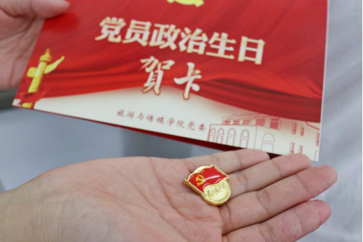 随后,正处级组织员唐军、党务干事刘幸、党支部书记肖丽群向在场8位党员赠送“政治生日”贺卡和党员徽章。“政治生日”贺卡上印有入党誓词和对党员同志的暖暖祝福。各位党员佩戴上属于自己的党员徽章,这不仅代表着他们的党员身份,更象征着中国共产党员的光辉信仰。