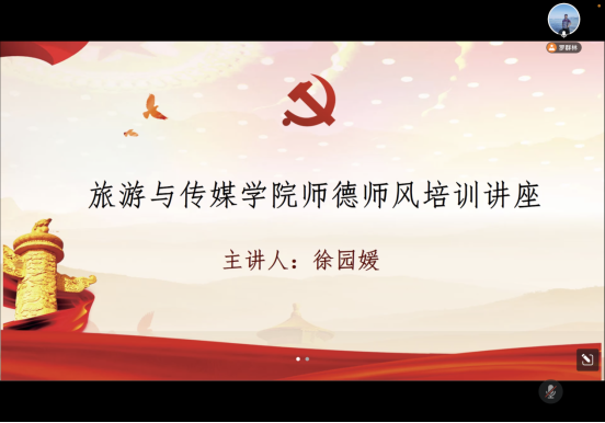 会议伊始,徐园媛开展了师德师风培训讲座。徐园媛首先结合“四有”好老师的标准,给大家阐述了:“做好老师,要有理想信念、有道德情操、有扎实学识、有仁爱之心。”接下来,徐园媛列举了“一位特级教师的成长领悟——人应该仰望点什么”的具体案例,并强调:“作为一名教师,要始终同党和人民站在一起,自觉做中国特色社会主义的坚定信仰者和忠实实践者,忠诚于党和人民的教育事业,自觉把党的方针贯彻到教学全过程,严肃认真对待自己的职责。希望全体老师率先垂范,以身作则,引导和帮助员工把握好人生方向,扣好人生的第一颗扣子。”