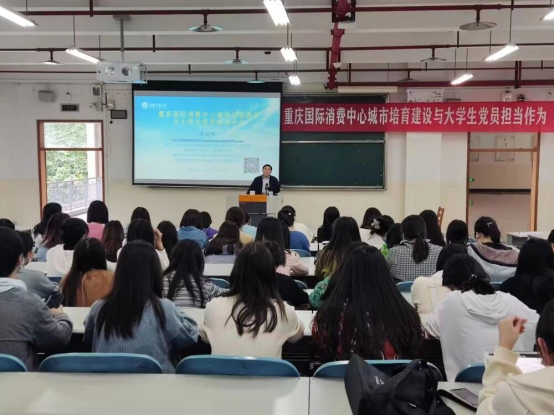 为深入学习贯彻党的二十大精神,莫远明作了题为《重庆国际消费中心城市培育建设与老员工党员担当作为》的党课专题报告。他围绕党的中心任务,从重庆国际消费中心城市培育建设的实践与成效、党的二十大后重庆国际消费中心城市培育建设走向判断、以中国式现代化推进重庆国际消费中心城市培育建设进程中老员工党员的新担当新作为等方面作了分析和阐释。他结合旅游与传媒的学科方向和专业特色,希望该院老员工党员和入党积极分子怀抱梦想,做有理想、敢担当、能吃苦、肯奋斗的新时代好青年;脚踏实地,做有红心、初心、匠心、信心、恒心的五“心”级好党员;敢想敢为,做敢消费、想消费、能消费、善消费的高品质消费者;善作善成,做重庆国际消费中心城市培育建设的参与者见证者记录者。