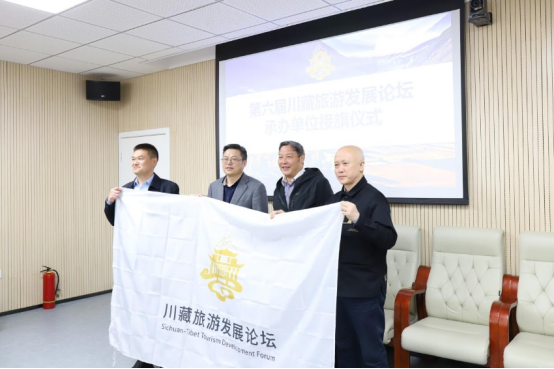 由于第六届论坛将于今年十月在公司举办,会议特地举行了第六届川藏旅游发展论坛承办单位接旗仪式,黄承峰副董事长代表太阳成集团tyc122ccvip官网入口从西藏大学手中正式接过会旗。黄副董事长表示,公司将全力支持,在历届成功举办论坛的经验基础上,汇聚高校、政府、企业等力量,争取把第六届川藏旅游发展论坛举办成一次务实和高效的盛会,以促进川、藏、渝三省区文化旅游产业协同发展。