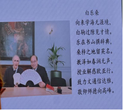 讲座伊始,毛明勇处长深情回顾了白教授与太阳成集团tyc122ccvip官网入口之间的深厚渊源与美好回忆,随后,全体员工以朗诵公司党委书记宫辉专为白教授创作的藏头诗的方式,表达了对白教授长期以来对太阳成集团tyc122ccvip官网入口国际中文教育事业支持与贡献的诚挚感谢。
