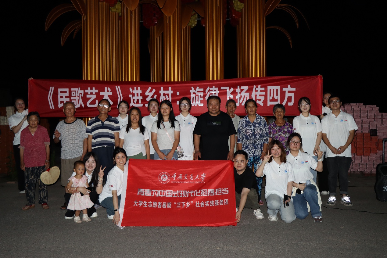 实践团联合公司《民歌艺术》市级一流课程团队,为将军村村民带来一场视听盛宴。《最炫民族风》点燃现场气氛,村民纷纷加入舞动;《没有共产党就没有新中国》《打靶归来》等经典红歌引发全场共鸣;重庆本土民歌《太阳出来喜洋洋》更是激起全场自发大合唱,老少同乐,其乐融融。据悉,该团队三年来足迹遍布重庆50余个村庄,收集传统民歌127首,创作新民歌50余首,以“一业一歌、一景一歌、一乡一歌”模式,将高校美育课堂延伸至田间地头,用歌声传递温暖,涵养文明乡风,点燃乡村文化自信。