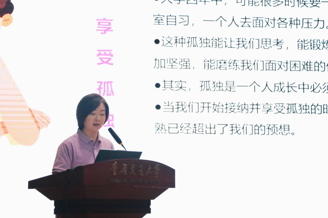 “独立意味着更大的社会责任,自由意味着更多的包容,解放意味着更多的自我管理,长大意味着更多的付出。”学工办主任、团委书记谭自慧介绍员工教育管理情况时讲到,她还详细解读了“助、贷、奖、勤、补、免”六位一体的资助政策,助力新生学习。她也鼓励新生弘扬两路精神,积极参加“三下乡”暑期社会实践活动。并寄语“旅传学子学会管理时间,克服惰性,享受孤独,快乐自己。”