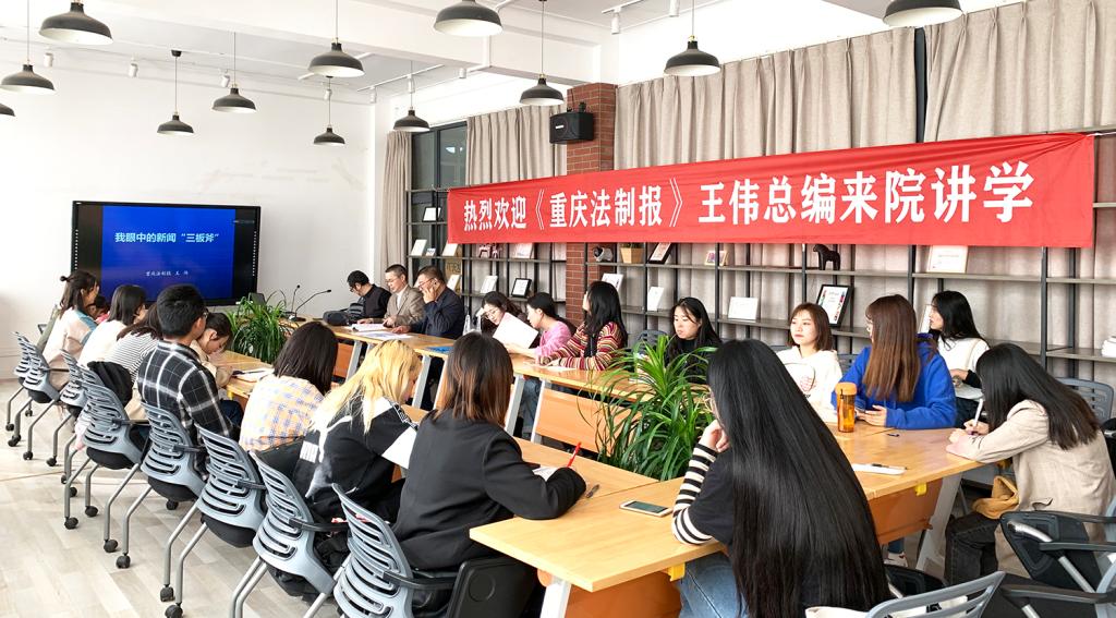 10月22日15:00,应人文公司邀请,《重庆法制报》总编王伟在第一教学楼414教室作了题为“我眼中的新闻三板斧”的学术报告。新闻与传播学科负责人李红秀教授,2020级全体研究生参加,党总支书记李大勇主持。