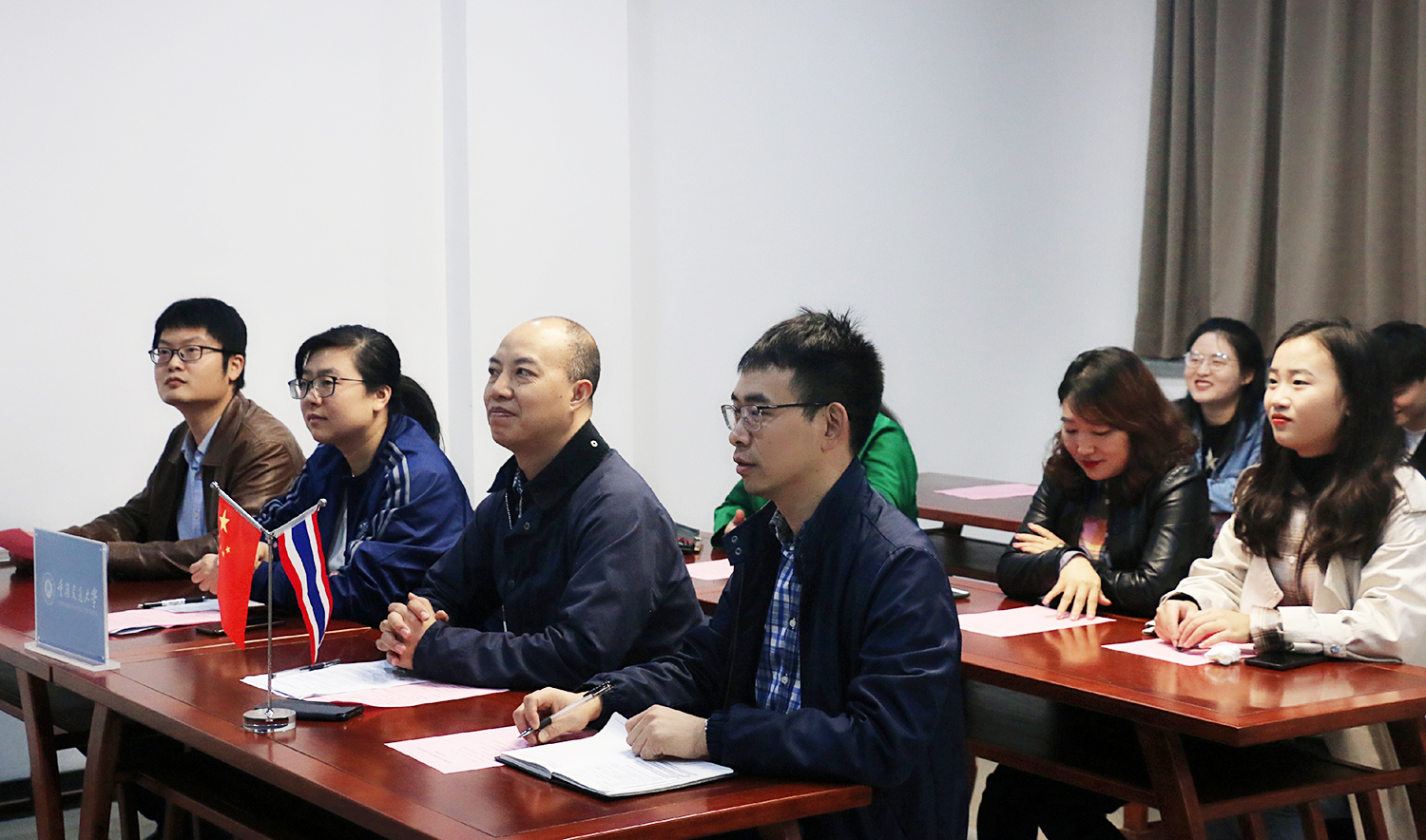 10月26日,人文公司汉语国际教育专业2020级本科开学典礼于40112教室以“线下+线上”视频会议的形式召开。副经理郑涛,国际公司职工工作科科长郑媛媛、汉语系副主任周寅、汉语系教师、2019级研究生员工代表及2020级全体员工与会;2019级汉语国际教育专业陈云海同学担任中泰翻译。