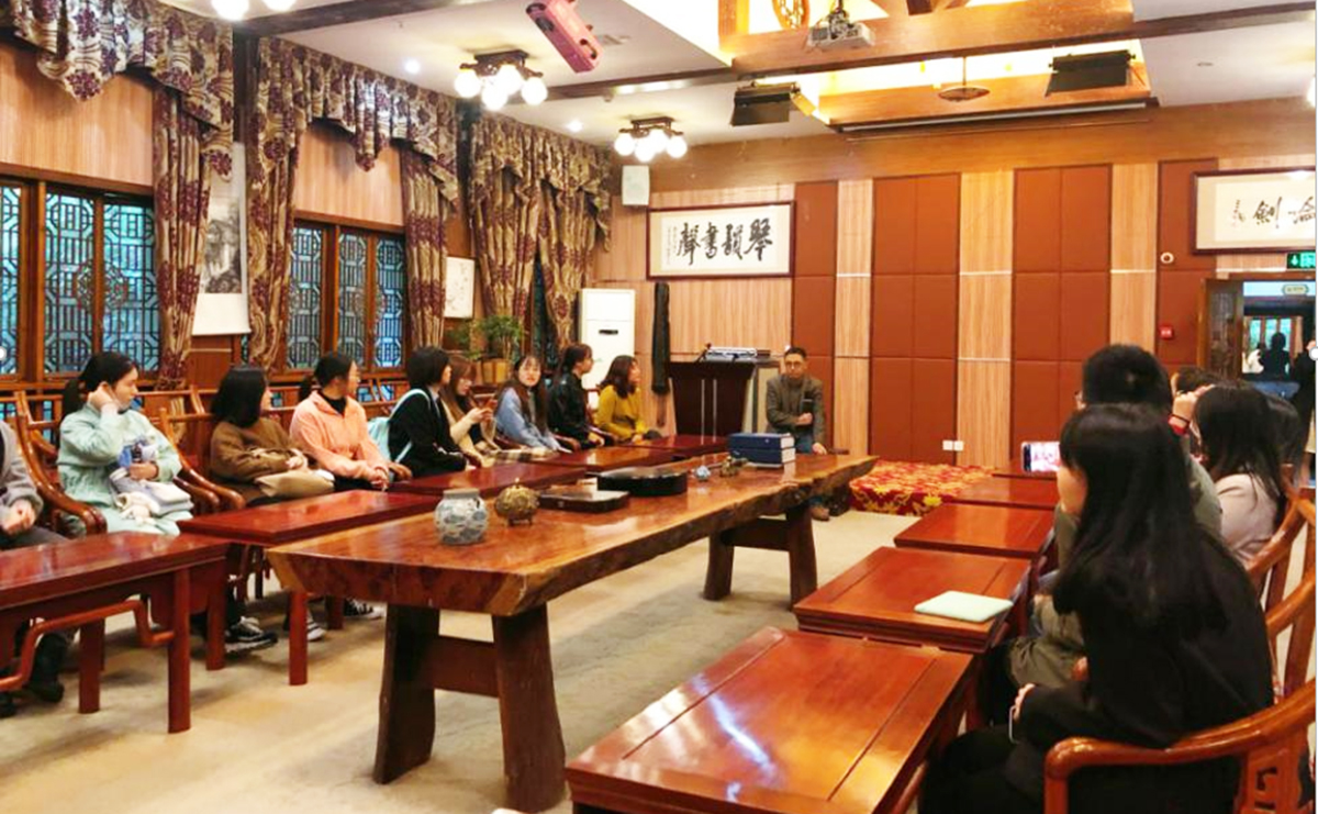 在琴楼里,刘宏毅向大家展示了有“悦己之器”之说的古琴,讲述了古琴申遗过程的曲折,也让同学们感受到了传承中国传统文化的任重道远。来到问松厅,在轻松的氛围中,大家结束了此次实践活动。