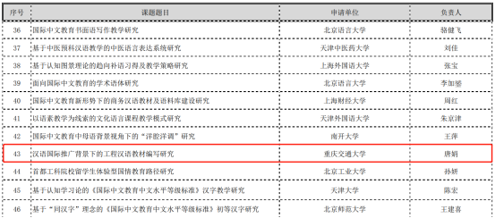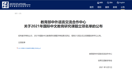 其中公司唐娟老师、沈林老师申报的《贝宁中文教育基本情况调查研究》获得2021年度国别中文教育项目立项;唐娟老师申报的《汉语国际推广背景下的工程汉语教材编写研究》获得国际中文教育研究课题立项;唐娟老师、沈林老师、何洪霞老师、唐海艳老师四位老师分别获批2021年度《国际中文教育中文水平等级标准》教学资源建设项目。