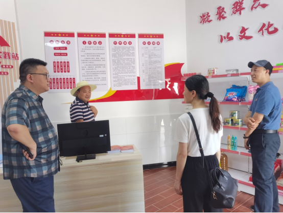龙角镇纪委书记黎轶、泉水村驻村第一书记樊信友、泉水村党支部副书记陈中顺等镇村领导陪同课题组参观了泉水村村容村貌,考察了积分超市、清风驿站、中药材种植基地等地。