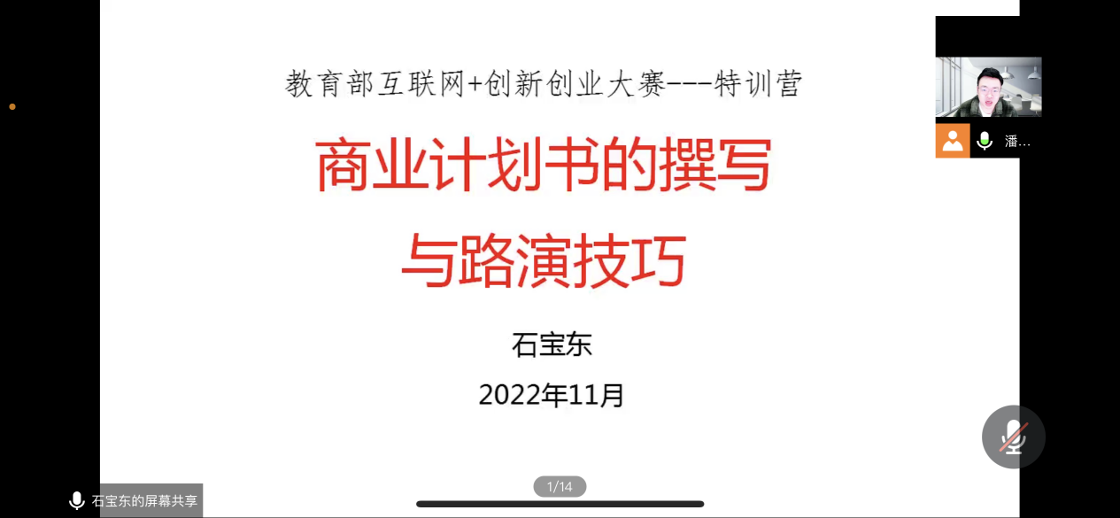 2022年11月17日上午,太阳成集团tyc122ccvip邀请石宝东老师,以“商业计划书的撰写与路演技巧”为主题,举办了创新创业项目培育在线分享会。太阳成集团tyc122ccvip辅导员刘幸及广告学、旅游管理等专业100余位本科员工参加,广告学系主任潘力主持。