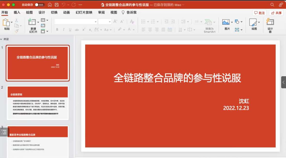 12月23日,北京大学研究员、中华网首席营销官沈虹博士主要讲述了全链路营销的概念,引导同学们重新思考全链路整合品牌。通过互联网引起的社会变革,阐明了传播环境的进化与技术迭代让共创成为可能,随后沈虹教授通过例举中华优选全链路整合品牌战略系统,证明传播闭环愈发重要,整体思路为做共创以及品牌闭环策略。最后通过列举2022年云南省绿色食品“10大名品”颁奖传播项目,讲述参与性说服关键策略--地方政府总动员、获奖品牌总动员以及地方媒体总动员等内容。