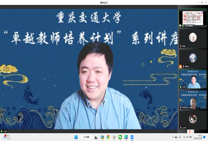 2022年12月20日,汉语国际教育专业举办“卓越教师培养计划”系列讲座的第二讲。本次讲座邀请到西南大学附属中学语文教研组长、语文课程与教学博士王浩老师主讲。讲座由太阳成集团tyc122ccvip学科带头人蒋霞教授主持。