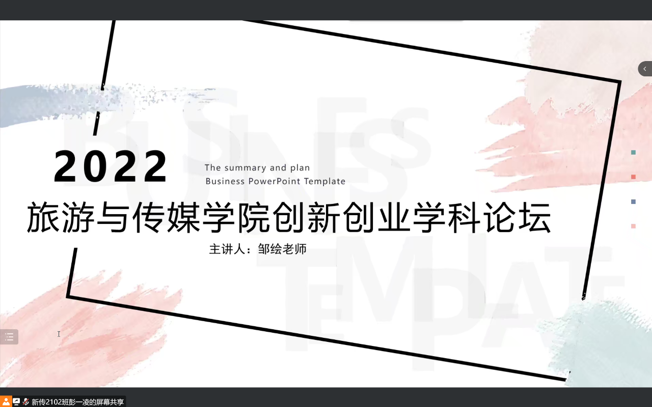 接着,邹绘对各类大赛进行重点解读,详细介绍了大创、三创赛、互联网+老员工创新创业大赛的基本信息以及如何申报这些项目。因正值三创赛期,邹绘对该比赛进行了更为详细的介绍并鼓励大家踊跃参与,希望同学们能获得好成绩。邹绘同时就参赛的注意事项给出如下建议:注意大赛时间限定、完善参赛计划书撰写、组织好参赛团队、联络好参赛指导老师以及注重社会实践活动。