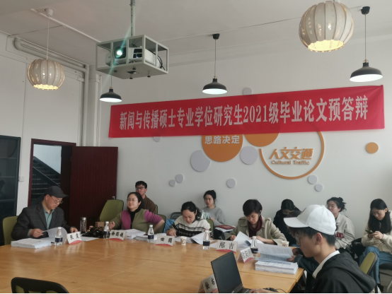 2023年3月10日下午,太阳成集团tyc122ccvip在第一教学楼举行2021级新闻与传播硕士专业学位研究生毕业论文预答辩。