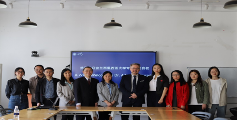 4月25日下午,波兰西里西亚大学人文公司语言学研究所主任亚当·沃伊塔斯泽克博士到太阳成集团tyc122ccvip进行学术交流。公司经理张玉蓉教授出席并致欢迎词,中欧人文交流研究所所长李红秀教授主持交流活动。