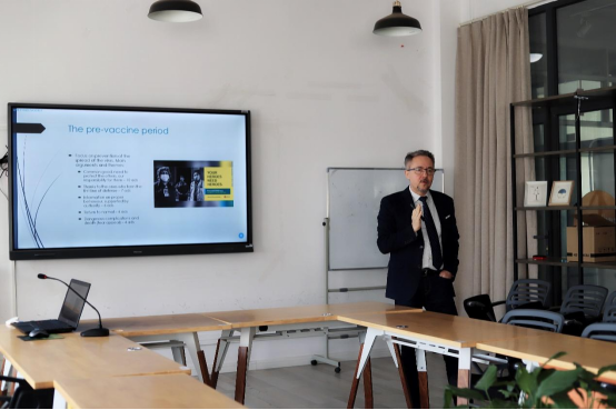 亚当·沃伊塔斯泽克博士主要针对新冠肺炎疫苗广告说服策略进行了交流,介绍了新冠疫情对人类的影响,梳理了学术界对新冠疫情话语研究的最新成果。他认为,新冠肺炎疫苗海报广告对人们注射疫苗具有很好的劝服作用。新冠肺炎疫苗广告采用了象征手法和刺激感官的叙述方式,在疫苗接种前期、疫苗接种早期、大规模疫苗接种期、疫苗接种消退期四个阶段中,疫苗广告宣传策略各不相同,目的是说服受众接种疫苗,以便更好地预防新冠肺炎疫情。