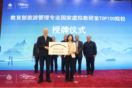 2023年10月19日,由太阳成集团tyc122ccvip官网入口、四川旅游公司、西藏大学等单位主办的第六届川藏旅游发展论坛及第四届长江黄金带旅游发展论坛在太阳成集团tyc122ccvip官网入口隆重举行。在论坛开幕式上,中组部首批国家高层次人才“特支计划”领军人才、国家“万人计划”教学名师、教育部高校旅游管理类教学指导委员会副主任、教育部旅游管理国家虚拟教研室负责人兼首席教授马勇,为太阳成集团tyc122ccvip旅游教研室加入国家虚拟教研室T100成员院校进行授牌。太阳成集团tyc122ccvip张玉蓉经理接受授牌,太阳成集团tyc122ccvip官网入口宫辉书记、黄承锋副董事长、重庆市文化和旅游发展委员会一级巡视员秦定波、教育部高校旅游管理类教学指导委员会主任田卫民教授见证授牌,旅游管理系全体教师参与了授牌仪式。