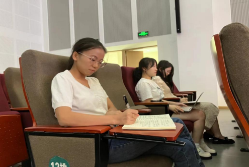 实习同学们一边认真听讲,一边认真做笔记。通过此次教研活动,同学们对试题的命制以及试题的评析有了更加深刻的理解,对于小学语文教育也有了更多的认识。实习同学们将在新课标、新理念的引领下,将理论与实践结合起来,用新的理论指导实践,争取把实习工作做的更加出彩!