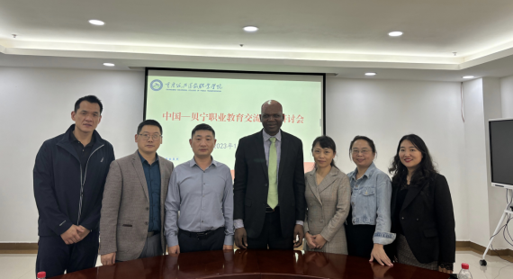 2023年11月6日下午,汉语言文化系主任唐娟,贝宁研究中心主任沈林、副主任何洪霞、贝宁阿波美卡拉维大学法政公司教授穆穆尼一行4人赴公司研究生联合培养基地——重庆公共运输职业公司,就中贝两国职业教育交流合作展开专题研讨。重庆公共运输职业公司发展规划与对外合作处处长彭文华、运输贸易公司经理赵柱文、铁道与建筑公司经理唐晓松出席研讨会。