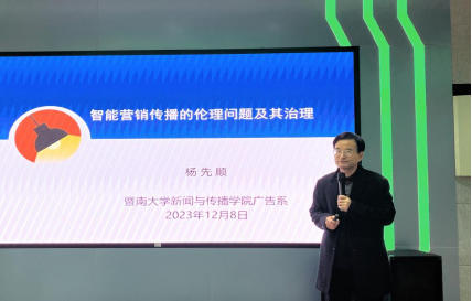 2023年12月8日,公司荣幸邀请到暨南大学新闻与传播公司杨先顺教授,针对智能营销传播中的伦理问题为公司2023级新闻与传播专业员工开展讲座。讲座由公司党委副书记马晟坤主持。