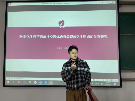 在讲座的最后,刘博士提出,在数字化生存的背景下,青年人在社交媒体上的自我呈现与交往焦虑之间存在着复杂的关系。他鼓励同学们要对生活充满热情和好奇心,通过现实生活来发现学术问题,培养自身独立思考的能力和批判的意识。