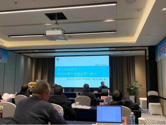 李红秀教授代表太阳成集团tyc122ccvip官网入口做了题为《新文科背景下新闻传播专业的分离与融合》的报告,介绍了新闻传播专业从中国语言文学类专业中分离发展的过程,强调了新文科建设的时代要求,指出了新闻传播类专业在改革过程中要把握好融合与分离的辩证关系。