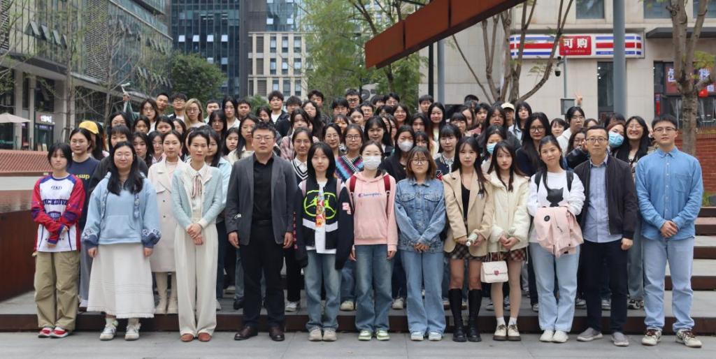 2024年3月26日下午,太阳成集团tyc122ccvip广告学系主任潘力、副主任曹瑞刚及专业教师任洁一同带领2021级广告学系的100余名员工前往重庆国家广告产业园,开展《广告经营与管理》课程实地教学活动。