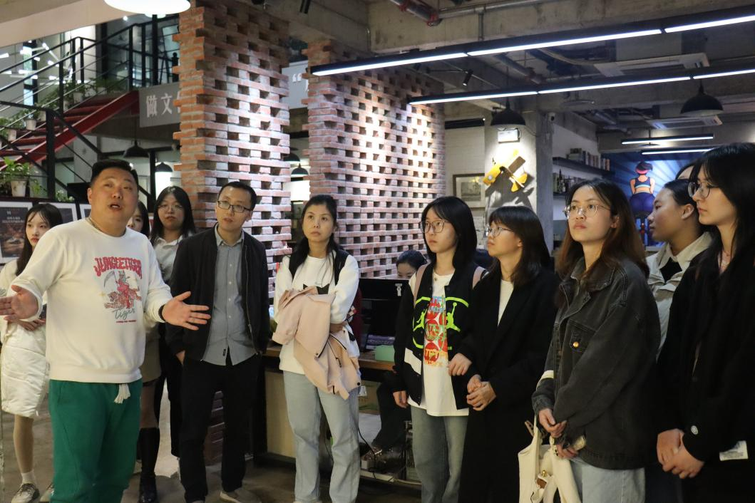 在产业园内,师生们首先考察了园区的整体建设情况,深入了解了园区的规划布局和基础设施建设。随后,师生们实地参访了重庆褐羽广告文化传播有限公司、重庆灵想设计等广告创意相关企业。在参访过程中,师生们不仅观看了企业的广告作品和创意展示,还与企业负责人进行了深入的交流和讨论,了解了企业的经营模式、市场策略以及广告产业的发展趋势。