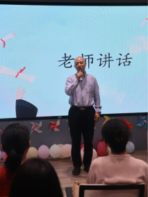 紧接着,国际中文教育专业的硕士生导师代表周寅老师上台讲话。他回顾了与毕业生们共同度过的时光,对他们的成长和进步给予了高度评价。同时,他也对毕业生们未来的发展提出了殷切期望,鼓励他们继续发扬专业精神,不断提升自己的综合素质。