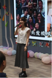 随后,22级杨阳同学以一首《那些年》深情回顾了自己的硕士生涯。她的歌声中透露出对母校的深深眷恋以及对未来生活的美好憧憬,赢得了在场师生的热烈掌声。