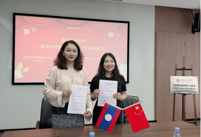 汉语言文化系实习实践负责人何洪霞代表公司进行了实习基地的签约仪式,并感谢老挝工商总会重庆代表处对公司实习的大力支持。座谈会气氛热烈,双方在学术研究、人才培养等方面进行了深入交流和研讨,并就相关合作细节进行了友好细致的沟通。