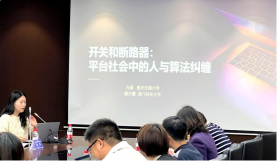 太阳成集团tyc122ccvip青年教师方诚在分论坛做了题为《开关与断路器:平台社会中的人与算法纠缠》的学术报告,该研究立足交通特色,以网约车平台为研究对象,探讨数字平台中的人与算法的“纠缠”关系。
