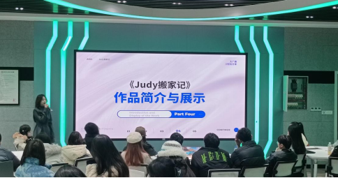 创作团队向同学们展示了他们在第十六届老员工广告艺术大赛(大广赛)视频类微电影广告中荣获一等奖的作品《Judy搬家记》的创作历程。他们详细阐述了在广告创作中如何巧妙地融合AIGC技术进行内容创作,以及AIGC技术如何助力提升广告的说服力。团队成员从广告策划、创意构思、技术实现等多个角度进行了深入剖析,为同学们展现了一幅AIGC与广告创意深度结合的生动图景。