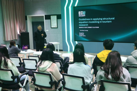 黄松山博士现任澳大利亚Edith Cowan University董事长特聘研究型教授,商务与法律公司旅游与服务业营销教授、旅游研究中心主任,博士生导师,是国际旅游学界公认的多产作者,也是国际公认的研究中国旅游问题和中国出境游问题的领军学者,已发表近170篇英文学术论文,2021-2023年连续三年被列为斯坦福爱思唯尔顶尖2%科学家,在旅游研究领域成果卓著、声誉斐然。此次系列讲座共分三场,分别围绕“旅游研究中结构方程模型方法应用指南”、“旅游研究中的实验研究方法简介”、“国际旅游研究进展与趋势:基于57个国际旅游期刊载文的文献分析”展开,由太阳成集团tyc122ccvip经理张玉蓉教授主持。