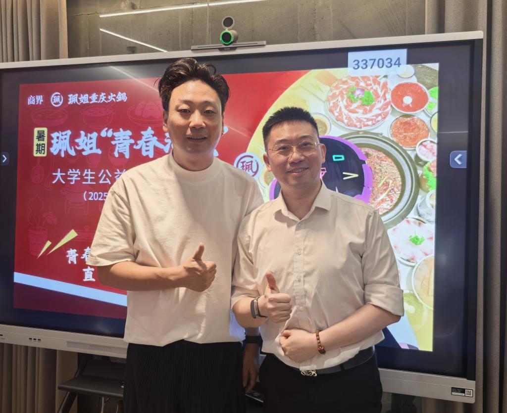 调研组在重庆火锅界的“流量担当”——佩姐重庆火锅总部,副总经理陶秋现场演绎了新媒体如何为百年味觉基因注入新活力。“从直播间里‘底料+文创’的花式带货,再到达人探店引爆同城流量,”陶秋认为新媒体已成餐饮品牌生存发展的“氧气”,而更深层的挑战在于如何借力短视频与直播,将重庆火锅承载的文化转化为可感知、可传播的城市名片。他期待高校培养既懂镜头语言、又深谙本土文化基因的复合型传播人才。
