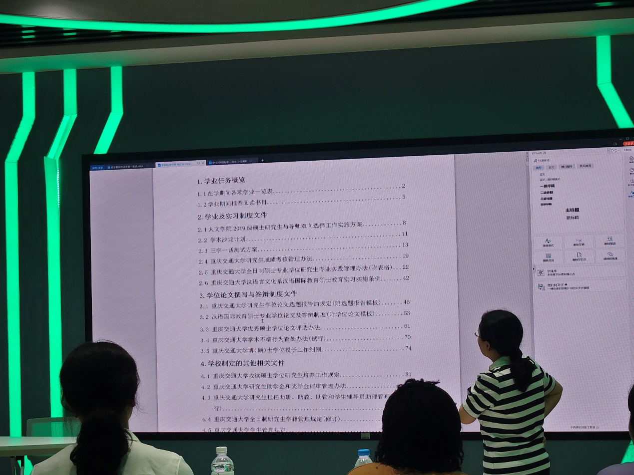 蒋霞老师从学习任务,学业及实习制度,学位论文的撰写和答辩,公司奖助学金以及其他相关文件方面进行了讲解。她说到,在学习任务上,同学们既要吃透专业理论,也要主动参与课题实践,平衡好课程学习与学术研究的关系。在实习制度方面,实习是检验所学的重要环节,要按要求完成实习时长与报告,有问题及时和导师沟通。学位论文从选题到答辩,每一步都要严谨,多和导师交流思想。