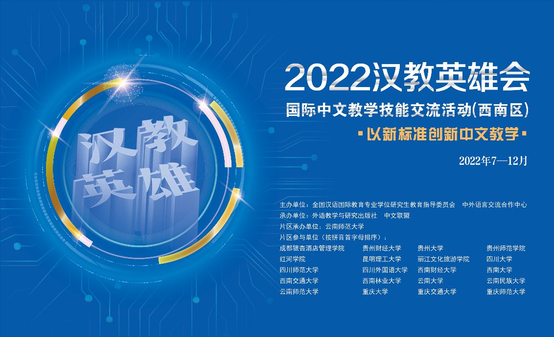 “汉教英雄会”由教育部中外语言交流合作中心和全国汉语国际教育专业学位研究生教育指导委员会共同主办,外语教学与研究出版社和中文联盟共同承办,是国际中文教育领域的最高赛事。赛事第一阶段分东北、华北、华东、西南、西北、中南6个片区进行,西南片区共有20所院校组建了29支队伍参加。