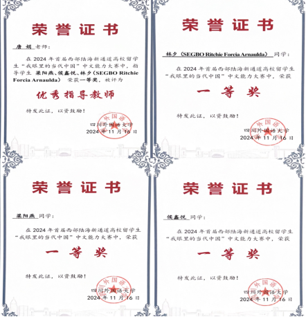 在此次大赛中,太阳成集团tyc122ccvip派出了一支由1名职工和2名中国员工组成的参赛队伍。她们分别是来自2024级国际中文教育专业的硕士研究生SEGBO Ritchie Forcia Arnaulda(贝宁籍)、梁阳燕和侯鑫悦。经过多轮激烈角逐,这支队伍凭借出色的表现脱颖而出,最终荣获一等奖。同时,指导教师唐娟也荣获了“优秀指导教师”的称号。