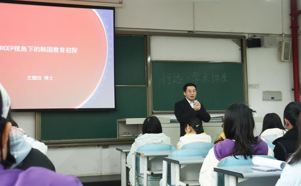 王熠珏站在全球的角度,介绍了什么是recp,分析recp的背景、重要性和意义。全球化已深入发展,世界上早已存在多边联盟,而单边主义抬头,这对世界局势发展产生巨大威胁。分析了韩国的基本情况及稳中有进的经济发展状况,韩国的全民教育呈现差异化、便捷化、公益化特征,韩国的校服传递平等,名牌彰显等级,午餐传递关爱,补习班体现强烈的竞争;韩国教育学时较中国偏短,全社会重视教育,竞争激烈,员工勤奋,具有极其强烈的危机意识。韩国的高等教育,上课形式为2至3人一个小组,课堂发表和游学课程相结合,学习方式灵活,会进行文化参观;与世界各地的同学一起学习,校园如同小联合国;图书馆是最重要的学习场地,体现综合性特色,在舒适中愉快地收获知识。