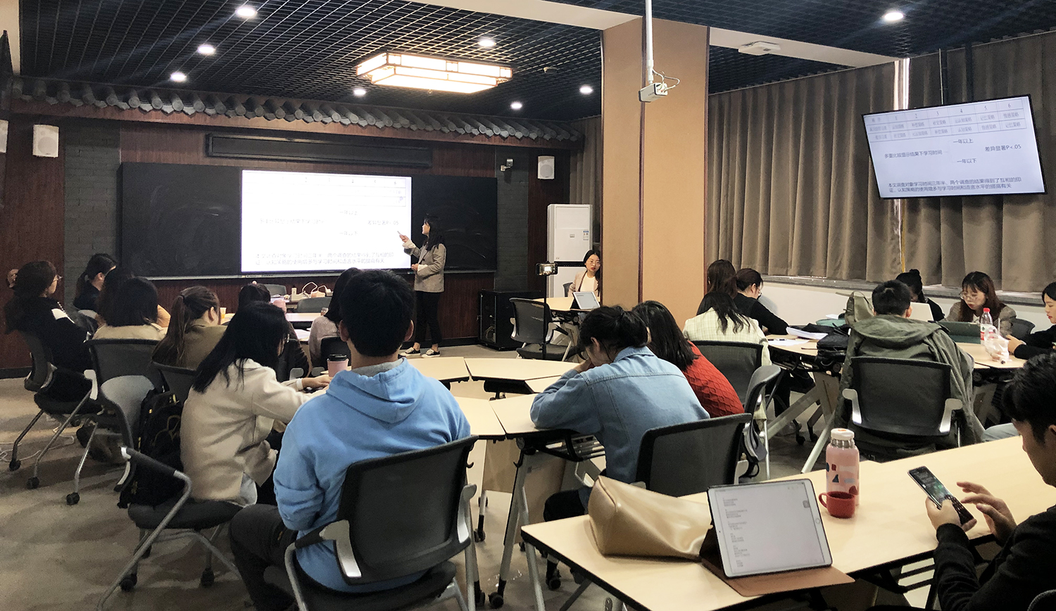 此次报告分享活动以吴勇毅教授《不同环境下的外国人汉语学习策略研究》为阅读材料。在张嫦莉老师的指导下,四位同学经过精心研读,向大家分享了外国职工汉语学习策略使用的总体趋势研究、环境因素对汉语学习和教学的影响、意大利员工汉语学习策略、汉语作为第二语言/外语习得的听力理解过程及学习策略研究这四大板块。