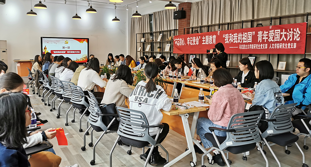 10月27日下午,人文公司研究生党支部、马克思主义公司研究生党支部在第一教学楼10414室联合举办了“不忘初心、牢记使命”主题教育——“我和我的祖国”青年爱国大讨论。活动旨在将青年老员工党员的爱国主义教育常态化、制度化,激励广大青年老员工党员守初心、担使命,大力弘扬爱国主义精神,为实现中华民族伟大复兴的中国梦不懈奋斗。人文公司研究生党支部、马克思主义公司研究生党支部、习近平新时代中国特色社会主义思想员工研习社、党建暨廉政文化研究学社共计40余人参加此次活动。