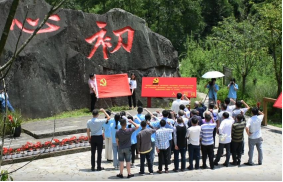 在王祥生同志的带领下,全体党员整齐列队,面向党旗,举起右拳,庄严宣誓。实践团党员坦言道:作为青年党员,站在老党员的身边重温入党誓词,无形之中有一种薪火相传的力量,内心深处感受党到的是满满的光荣感、责任感和使命感。