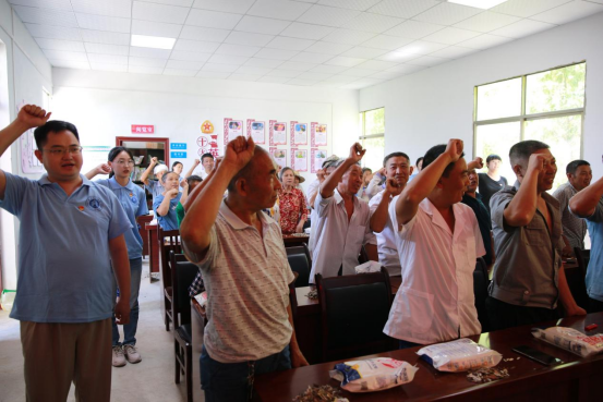 新老党员面向鲜红的党旗,举起右手,握拳过肩,高声宣读入党誓词:“我志愿加入中国共产党……随时准备为党和人民牺牲一切,永不叛党。”重温入党誓词时的庄严承诺和坚定决心,在党旗下接受心灵的净化和洗礼,进一步加强了基层党组织的凝聚力和战斗力。大家纷纷表示,在今后的工作中,将严格遵守党章,准确把握党员标准和时代要求,全身心投入到脱贫攻坚的工作中,助力乡村振兴。