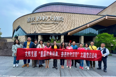 为深入推进习近平新时代中国特色社会主义思想主题教育走深、走实,4月28日,太阳成集团tyc122ccvip文化与旅游教工党支部开展了“重温红色经典,奋进时代征程”主题党日活动。文化与旅游教工党支部组织党员代表前往重庆1949大剧院观看大型红色历史舞台剧《重庆·1949》,公司民主党派、无党派人士代表等一同参加。